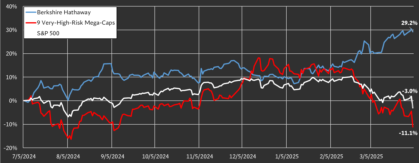 while Berkshire Hathaway, 1 mega-cap with a low-risk FRR™ rating, gained +29.2%.