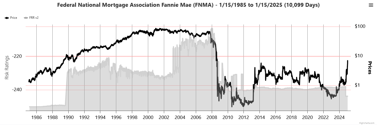 Today, Fannie Mae’s (FNMA) stock fell 13%, continuing a long history of volatility and losses for its investors. This serves as a stark reminder of the importance of understanding and managing risk. For over 40 years, Equity Risk Sciences (ERS) has been dedicated to providing tools that empower fiduciaries to make safer investment decisions, and our Fiduciary Risk Rating (FRR™) has proven invaluable in this mission.